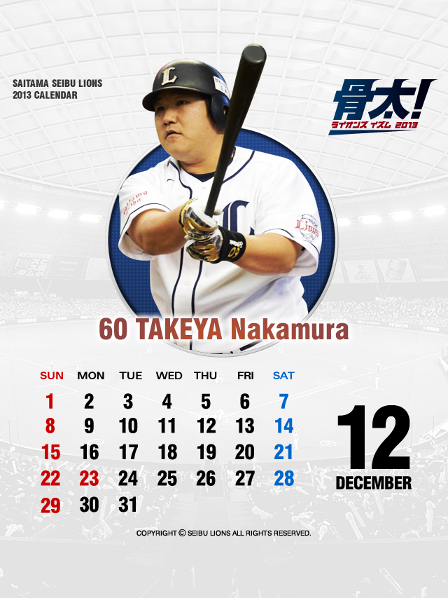 12月の壁紙・待受けカレンダーは、来シーズンの完全復活が待ち遠しい中村選手デザインです!