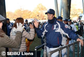 MY PAGE 本日11月23日(祝)、「LIONS THANKS FESTA 2013」が開催され、メインエリア(西武ドーム)、サテライトエリア(西武第二球場・室内練習場)を中心に、計52,700名(重複者含む)のファンの皆さまにご来場いただきました。