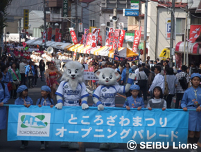 MY PAGE10月12日(日)埼玉県・所沢市内で開催されました“ところざわまつり”、また同日にさいたま新都心「けやきひろば」で開催されました“咲いたまつり”に埼玉西武ライオンズが参加しました。