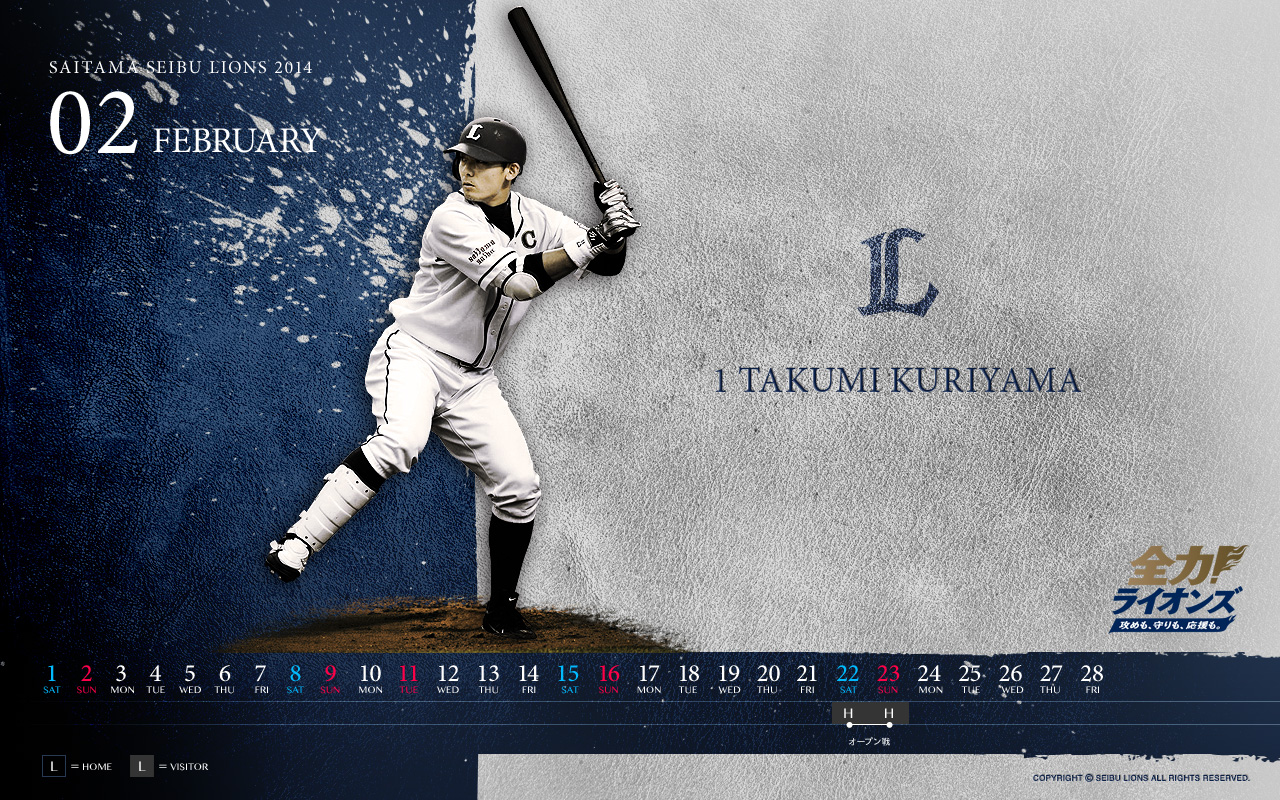 キャンプへ突入し、2014シーズンが本格始動する2月の壁紙・待受けカレンダーは、今シーズンも強力なリーダーシップでチームを引っ張るキャプテン栗山 巧選手デザインです!