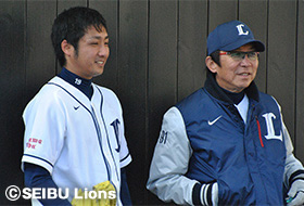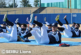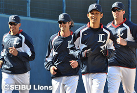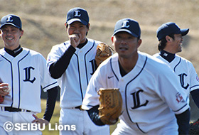 若獅子・野手5選手の全体練習終了後[2014南郷春季キャンプ]