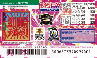 "宝くじ"とパシフィック・リーグ全6球団(北海道日本ハムファイターズ、東北楽天ゴールデンイーグルス、埼玉西武ライオンズ、千葉ロッテマリーンズ、オリックス・バファローズ、福岡ソフトバンクホークス)は、地域に根ざしながら社会へ夢をご提供する者同士バッテリーを組み、「スクラッチ」、「ロト7」の2商品についてコラボレーションすることとなりました。