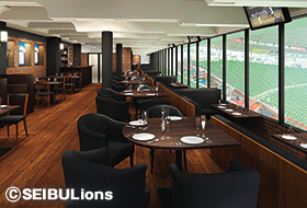 「オーナーズレストラン」とは、ボックスシートのオーナーさま、ロイヤルシート、ネット裏スペシャルシートを購入された方が利用できる、バックネット裏からフィールドが一望できるレストランです。