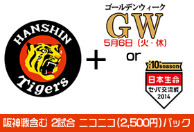 人気の阪神戦では、GW(5/6)や交流戦とのパック券を販売!