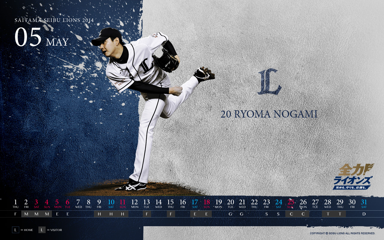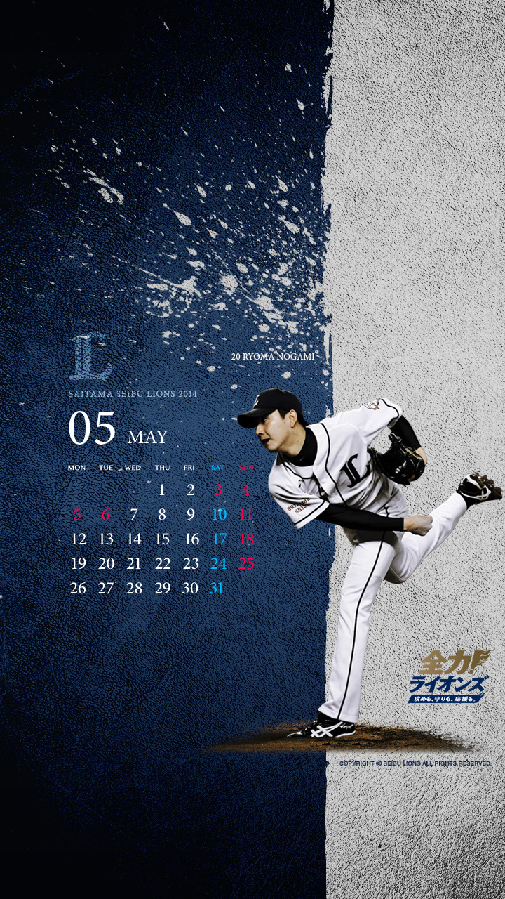 5月の壁紙・待受けカレンダーは、昨季2ケタ勝利を挙げ、今シーズンはローテーションの一角としてさらなる飛躍が求められる野上投手デザインです!