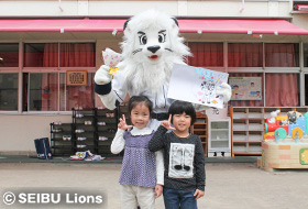4月から保育園・保育所に入園したこどもたちは、初めて会うレオやライナ、ブルーレジェンズに大興奮!みんなで仲良くダンスをしたり、野球レクリエーションをしたりと、元気良く参加してくれました!プログラム終了時にはすっかりレオやライナと仲良くなり、別れを惜しみながら、元気よく手を振ってお別れ。近いうちに西武ドームで再会することを誓ってくれました!