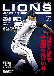 | 				 内容  | 							スペシャルインタビュー 髙橋 朋己投手 獅子交友録 注目PLAYER 野上 亮磨・十亀 剣・秋山 翔吾 教えて!ライオンズ[外国人選手とはどうやって仲良くなるの?] -牧田 和久投手- イベント情報・グルメ情報 MY LIONS STYLE 「交流戦、この対決が見たい!」 LIONS INFORMATION クロスワード・プレゼント ファーム選手大解剖 -山川 穂高選手- 選手名鑑 など  |
