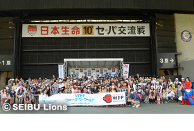 5月31日(土)に球団初の試みとなる、チャリティウォークイベント「WFPウォーク・ザ・ワールド in 西武ドーム」を開催。参加者は新緑の狭山丘陵を散策し、ウォーキングの後はライオンズの試合を観戦しました!また、ゴール地点では、お出迎えを行った寺川綾さんとハイタッチ!参加者の笑顔があふれるイベントとなりました。