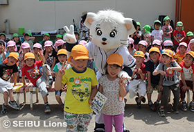 5月は所沢市を飛び出し新座市での訪問も実施。園児は初めて会うレオやライナ、ブルーレジェンズに大興奮!みんなで仲良くダンスをしたり、野球体験をしたりと、元気良く参加してくれました!