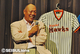 当時は「ユニフォームを見るのも嫌だった」とカズ山本氏が言えば、「よく打たれました」と工藤氏。平和台球場でのエピソードや、チームの裏話など、終始笑顔が絶えないトークショーとなり、最後は訪れたファンの方々ひとりひとりと握手をし、言葉を交わし閉会となりました。