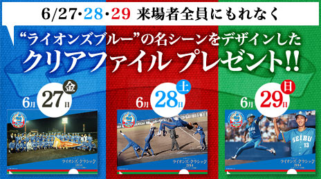6/27~29来場者全員に“ライオンズブルー”の名シーン「クリアファイル」をプレゼント!