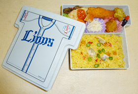 スタジアム弁当に仲間入りする埼玉西武ライオンズビジター型ユニフォーム弁当。食べ終わった後は、容器をお土産としてお持ち帰りいただけます!