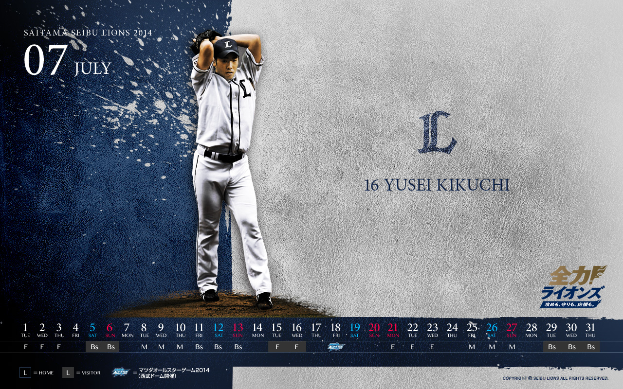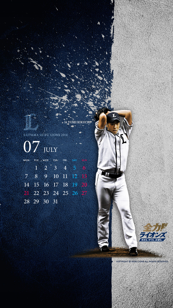 7月の壁紙・待受けカレンダーは、今シーズンから背番号「16」を背負い、左のエースとしてその成長が期待される菊池投手デザインです!