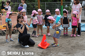 こどもたちへの心身育成活動の一環として実施している「レオ・ライナと楽しく遊ぼう!」プロジェクト。梅雨にも負けない元気な園児たちのもとをレオとライナが訪問!初めてバットを振る園児たちもフルスイングでボールを 遠くへ飛ばそうと張り切っている姿が見られました! 夏休み期間中もレオ・ライナの訪問を実施いたします! 皆さまからのご応募お待ちしております!