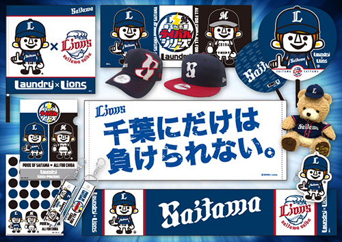 「千葉にだけは負けられない」の文字を全面にデザインしたこのシリーズならではの「千葉にだけは負けられない フェイスタオル」をはじめ、Laundryとライオンズ&マリーンズがコラボレーションした「ライバルシリーズ Laundryグッズ」やこのシリーズで着用する「Saitama」ユニフォームをモチーフにしたNEW ERAキャップなど、多数のグッズが登場します。