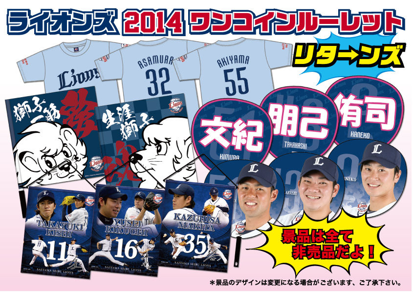 8月5日(火)~8月31日(日)の西武ドーム開催日は、魅力満載の豪華景品を狙って「ワンコインルーレット リターンズ」にチャレンジしよう! 1回500円でレアアイテムをGETできるチャンス。 ぜひ、この機会にお楽しみください!!