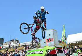「ライオンズpresents ストライダーアドベンチャーゾーン」の実施決定にあたり、シルク・ドゥ・ソレイユで活躍したプロライダー 有薗 啓剛氏と、マッスルミュージカルで活躍した守上 大輔氏で構成されたバイクパフォーマンスユニット「K&D」が、西武ドームB駐車場ストライダーエリアに登場! 「K&D」によるバイクパフォーマンスショーを実施いたします。