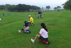 狭山スキー場の斜面をタイヤの付いた新感覚スポーツソリ「ポッカール」で滑るポッカールゾーン。