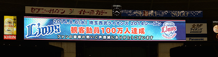 埼玉西武ライオンズは、本日8月6日(水)対福岡ソフトバンクホークス戦にて、今シーズンの主催公式戦の観客動員数累計が100万人を突破いたしました。