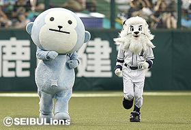ひかりTVのキャラクター「ひかりカエサル」と埼玉西武ライオンズのマスコット「レオ・ライナ」と記念撮影ができます。