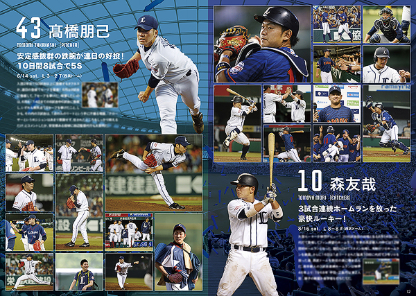 その他6日間で計26時間31分、一試合平均約4時間30分の死闘を繰り広げたジャングル大帝シリーズや、ウルトラマンレオ・ギンガや宇宙人などが球場に駆けつけ試合を盛り上げた、パ・リーグ 親子ヒーロープロジェクトの試合を振り返る写真集も掲載!!