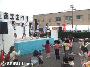 最後に熱戦が繰り広げられている我がライオンズの日本一を祈願し、皆様と「ゴーライオンズ!」の掛け声でステージショーを締めました。限られた時間でしたが暖かいご声援・拍手をいただき、貴重で楽しい時間を皆さまと過ごすことができました。