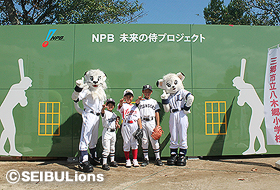 日本野球機構80周年記念事業、「未来の侍プロジェクト」の一環として、壁当て専用の“ベース・ウォール”が三郷市立八木郷小学校に寄贈され、埼玉県のプロ野球チームとしてライオンズが贈呈式に参加しました。