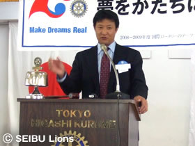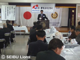 MY PAGE11月11日(火)に東京都・東久留米市商工会館内におきまして講演会が開催され球団OBの鈴木哲(球団本部業務部次長)が参加いたしました。