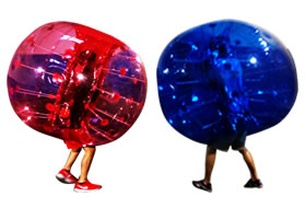 フィールド内に設けられたエリアの中で、バブルスーツ(写真)を着用した選手たちが激しくぶつかりあいながら、相手チームをエリアから押し出すバトルロワイヤル競技です。