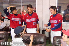 藤澤は見事なホームラン!!! コンパクトに振りきり捉えもようなっとる。自身の打撃の特徴を考え、それをモノにしようとしよる。守備面ではちょっと送球がバラついとるけど、そこは帰ってから秋元コーチに鍛えてもらいや! 試合後3選手、意外と人気があり、即席のサイン会を開催しました!」