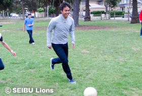 福倉・佐藤投手は、11月25日(火)にメルボルンに入り、球場でユニフォームの採寸を済ませた後、キャッチボール等で軽く汗を流します。翌26日(水)には球団の計らいもありマウンドでの投球練習を行い、その夜はメルボルン在住の日本人の方々にご招待いただき、バーベキューを楽しみました。食事の合間にはこどもたちとサッカーをするなどして交流しました。