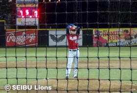 誠投手の後を受けて6回からは佐藤勇投手が登板。10月27日のフェニックス・リーグで投げて以来の久しぶりの登板は、いきなりストレートを連打され無死2、3塁。次の打者は変化球を3球続けて三振を取ったものの、次の打者を歩かせてしまい1死満塁の大ピンチ。ただここから佐藤投手が本領を発揮し力強いストレートを軸に後続を打ち取ると、続投となった7回のアウトは全て三振という圧巻の投球で2回を無失点で切り抜けました。