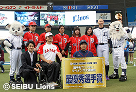 そして、車椅子ソフトボール日本代表キャプテン 石井康二選手がメインイベント「選手もファンも!ライオンズ大運動会」の表彰式プレゼンターとして出席! セレモニーを締めくくっていただきました。