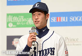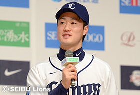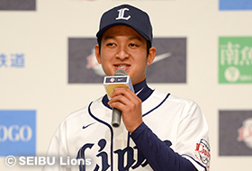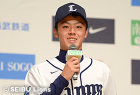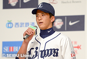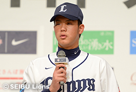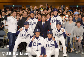 第1巡目指名の高橋光成投手をはじめとする期待のルーキー6選手が、初めてライオンズのユニフォームに袖を通し、詰めかけた多くのファンの皆さまの前で、力強く決意表明を行いました。