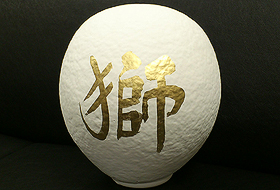 白いだるまに金色の文字が輝く上品な仕上がりが特徴です。