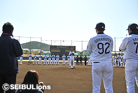 田邊監督は「空いているポジションを狙う若手が積極的に取り組み、チームの底上げができた」とキャンプを総括。期待する若手として石川選手、誠投手、福倉投手の名を挙げました。