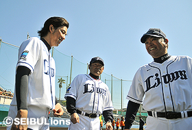 また、ティー打撃を行っていたメヒア選手は、自分たちの組がフリー打撃だと思いケージの方へ。ところがメヒア選手の組は次だったため、秋山選手から「ネクスト、ネクスト」と言われ苦笑いして戻る場面も見られました。