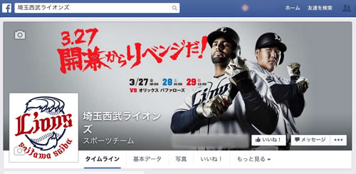 2013年6月から、Facebookページ「Lions Community」(※)にてファン、選手、スタッフなどライオンズに関わる人々を紹介してまいりましたが、このたび2015年3月23日より、『埼玉西武ライオンズ公式Facebook』を新設! ご好評いただいた「Lポーズ」の投稿から、ファンの皆さんが知りたい試合情報をはじめ、グッズ・グルメ情報の紹介、選手やコーチに参加していただく投稿など、ライオンズの魅力を順次発信していきます!