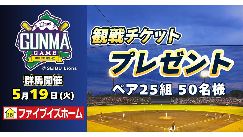 ファイブイズホーム『5/19(火)群馬開催 観戦チケットプレゼント』Instagramキャンペーン