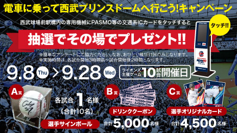 9/8(木)〜「電車に乗って西武プリンスドームに行こう!」キャンペーン開催!