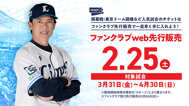 【明日2/25(土)はFCweb先行販売日】来場者への配布グッズありの開幕シリーズや東京ドーム開催のチケットは先行販売で!