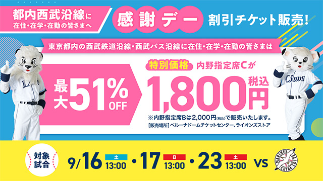 イベント チケット9/18(月・祝)球界初!「球団旗刺繍フラッグ」を来場者全員(※)に配布! -