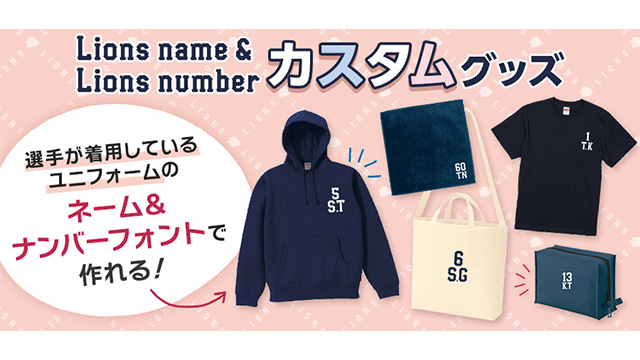 【9/7(木)~受注開始】数字とイニシャルを選んでTシャツやバッグを作れる!「Lions name&Lions numberカスタムグッズ」