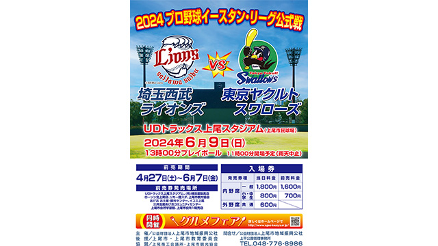 イースタン・リーグ公式戦 上尾市民球場開催のお知らせ