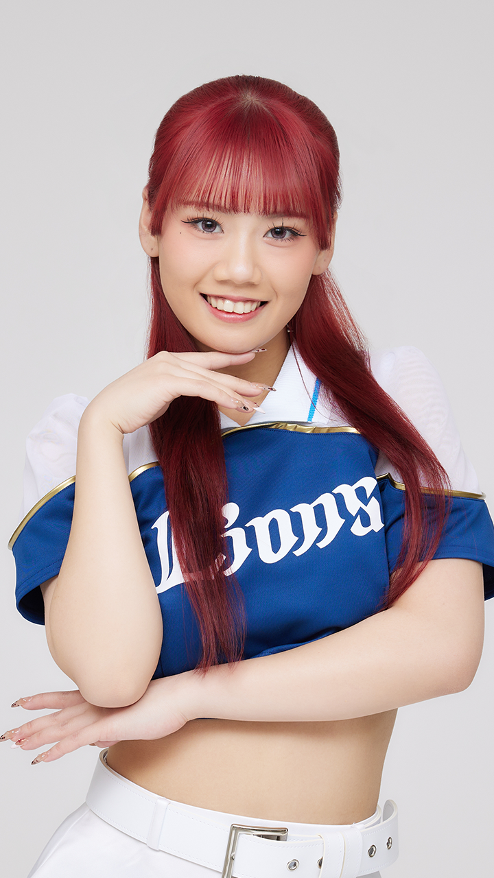 ルーキーのMi-miです! 赤髪をなびかせながら、とびっきりのスマイルと迫力満点のパフォーマンスで球場を熱く盛り上げます♪♪ ライオンズを勝利へと繋ぐ架け橋になれるように、bluelegendsの一員として誠意を持ち感謝を忘れず、精一杯がんばっていきます!☆ 2026シーズン、ライオンズの優勝を目指して私たちと一緒に熱い青炎を送りましょう!!