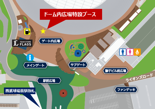 ※『LIONS THANKS FESTA 2025 supported by Olive』開催当日は、フラッグス側メインゲートの一番左のゲートをショップ待機列専用入口として使用します。