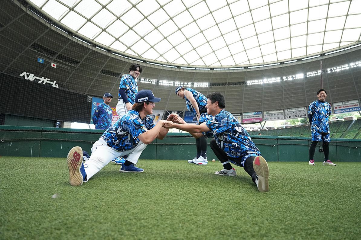ライオンズの赤澤S&Cコーチ監修のメニューを体験。選手と一緒に準備運動をして、とことん楽しみましょう♪