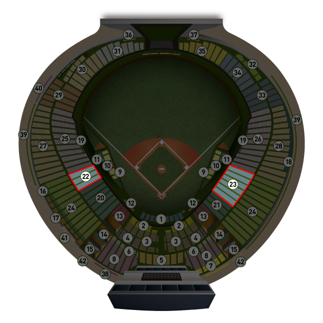 - ⑬セブン-イレブン・ダグアウトテラス【3塁,1塁】(グループ席:5名)